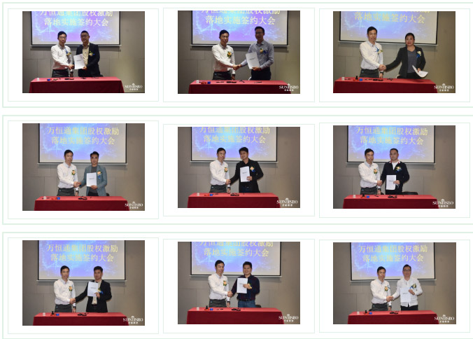 尊龙时凯集团执行董事及法人代表王浩基先生正式为第一期六位虚拟受限股股东授予荣誉证书并签订股权分配协议。